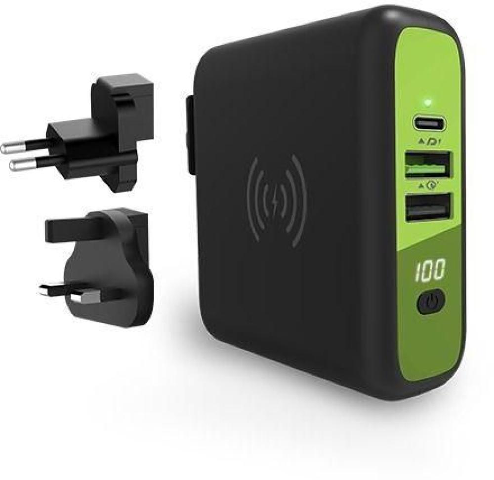شاحن جداري بتقنية QC 3.0 + شاحن لاسلكي بقوة 10 وات + باور بنك سعة 8000 م أمبير من قوى