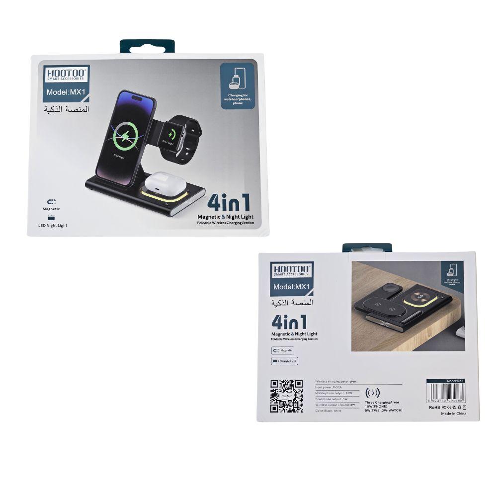شاحن لاسلكي قابل للطي 4 في 1 HOOTOO MX1
