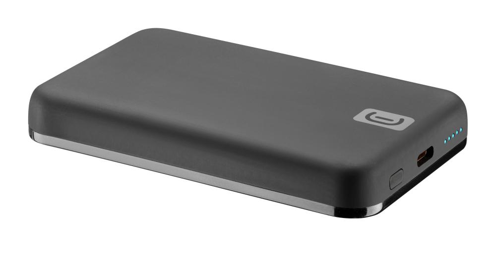 يعد باور بانك Cellularline Mag 5000 MagSafe حلاً احتياطيًا مثاليًا لإعادة شحن جهاز iPhone والأجهزة الإلكترونية الأخرى. بسعة كاملة تبلغ 5000 مللي أمبير في الساعة، يمكنها شحن أحدث الهواتف عدة مرات بسرعة وأمان. يمكن لبنك الطاقة الشحن لاسلكيًا باستخدام تقنية MagSafe بقوة 7.5 واط، ويبدأ الشحن فورًا بعد توصيله بالجزء الخلفي من iPhone. البديل هو الشحن باستخدام كابل USB-C. بفضل خلايا الليثيوم بوليمر عالية الأداء، وعلى الرغم من السعة الكبيرة، يحتفظ بنك الطاقة بأبعاد مدمجة. السطح المطاطي لبنك الطاقة لطيف الملمس وله خصائص مضادة للانزلاق.